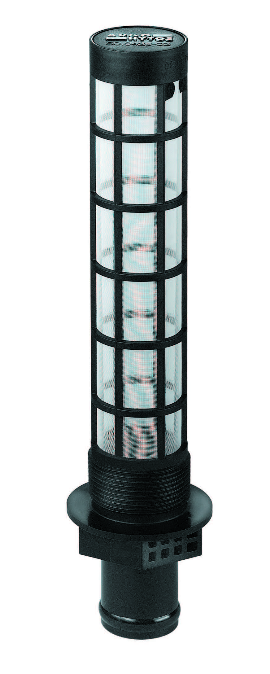 Robustní konstrukce s připojovacím hrdlem pro hadici, těleso ze zesíleného plastu a vloženou tkaninou sítka nabízí následující výhody: